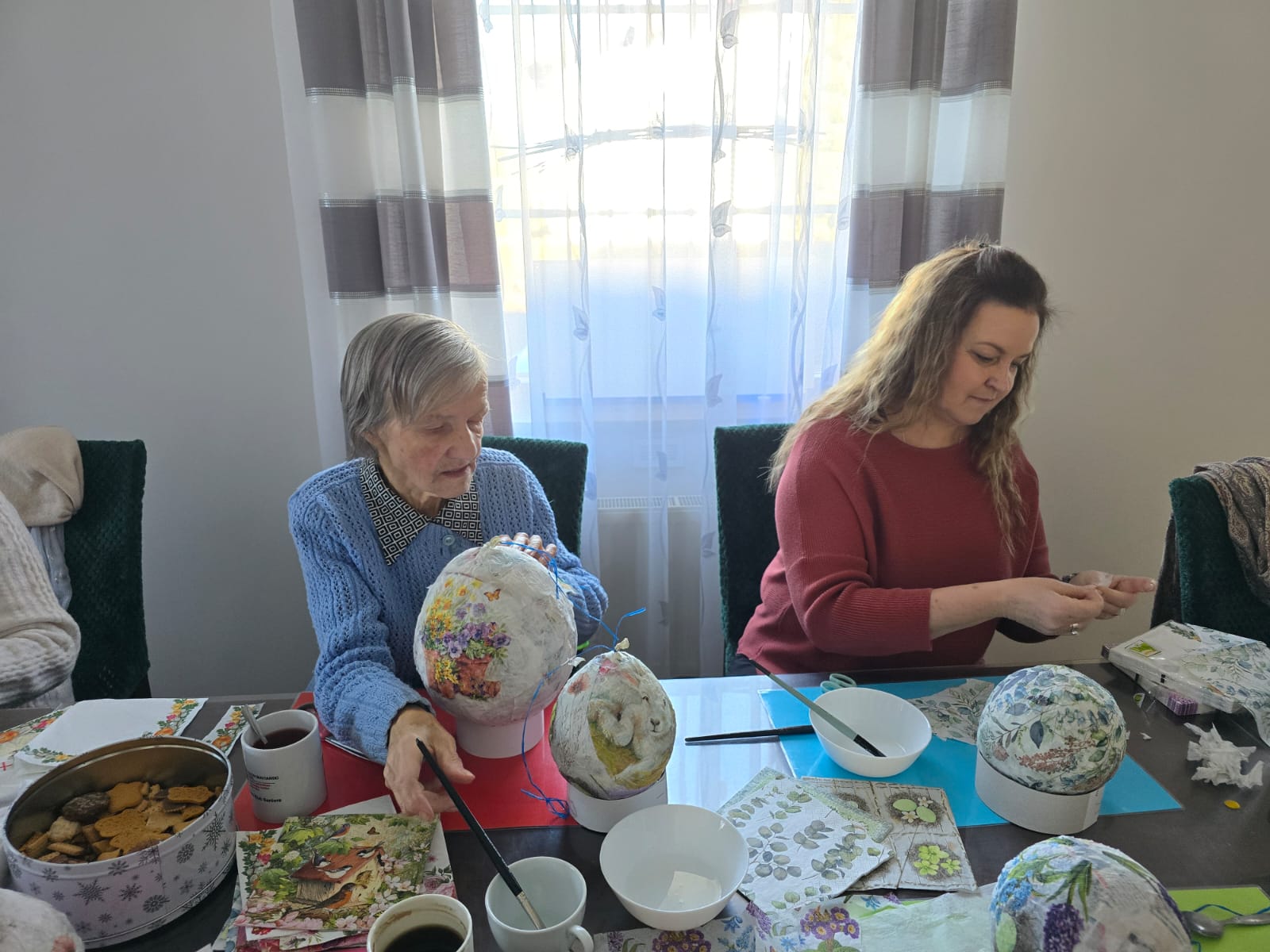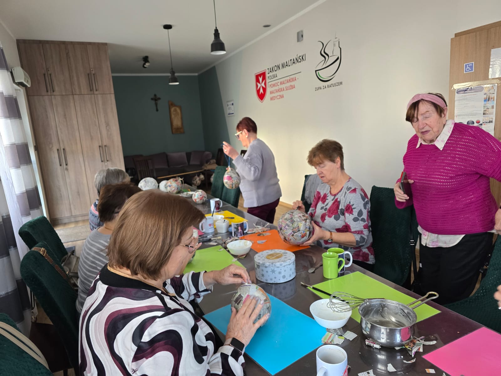 Luty w siedzibie przy ul. Harcerskiej upłynął pod znakiem twórczej pracy i wspólnej aktywności. Seniorzy rozpoczęli przygotowania do Wielkanocy, wykonując dekoracyjne jaja z balonów i gazet, a następnie ozdabiając je techniką decoupage. Powstały barwne, ręcznie wykonane ozdoby świąteczne.